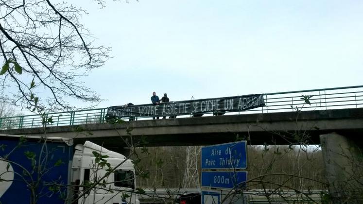 En parallèle, les agriculteurs du Loiret ont installé sur les ponts de l’autoroute des messages de communication afin de révéler le double jeu d’Emmanuel Macron pour les milliers d’usagers de l’autoroute :