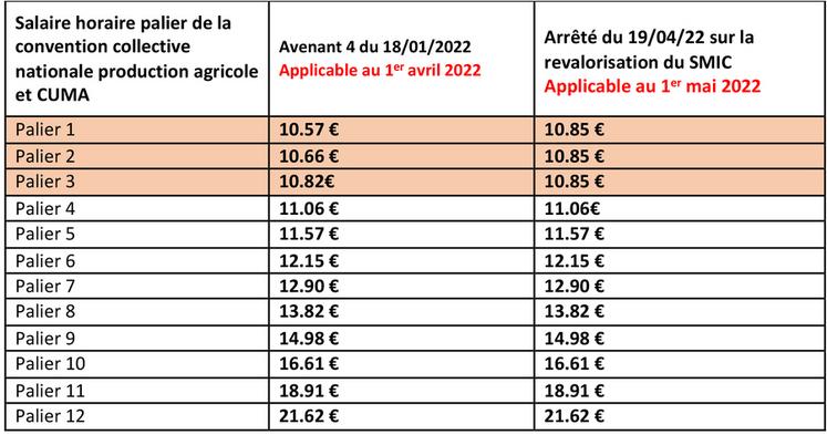 La convention collective nationale production agricole et Cuma (n°7024) se voit donc rattrapée pour ses trois premiers paliers. Cette augmentation du salaire minimum fait en effet passer en-dessous du Smic les trois premiers échelons pour lesquels il faudra désormais appliquer au minimum le Smic.
