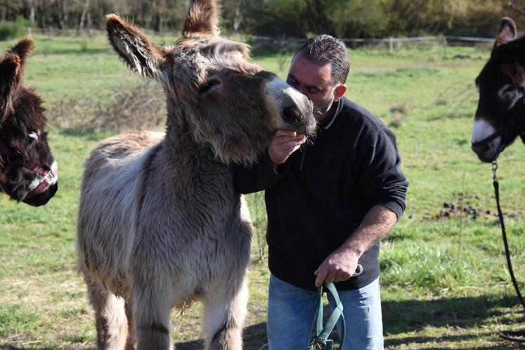 Ce n’est que quelques années plus tard, que Grunch, un âne reçu en cadeau à Noël, a fait naître son envie d’élever des ânes. « On a souvent été pris pour des doux rêveurs. N’empêche qu’on est toujours là et qu’aujourd’hui nous avons un cheptel de vingt-quatre bêtes », se réjouit Olivier, qui ne fait que trois naissances par an pour assurer la production de lait et qui veille à replacer les « grands bébés » dans de bonnes familles.