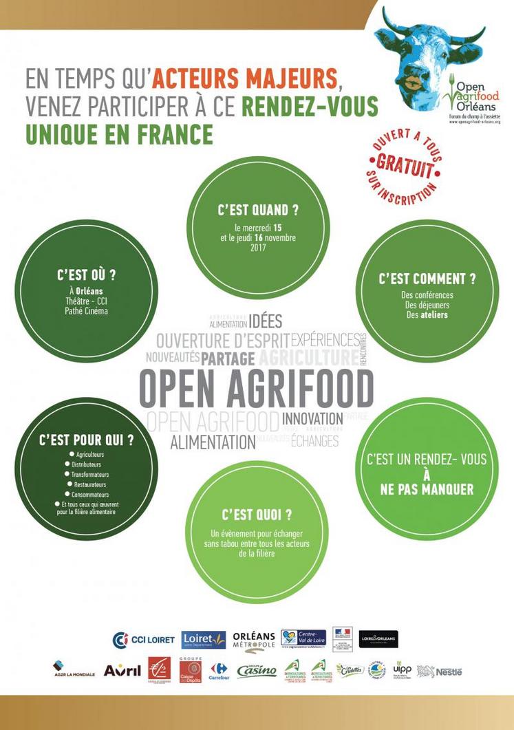 Créé il y a 5 ans par Xavier Beulin et Emmanuel Vasseneix, le forum Open agrifood tiendra son édition 2017 les 15 et 16 novembre prochain à Orléans. Cette année, les acteurs de la filière alimentaire, dont les agriculteurs, se retrouveront autour de la thématique « Alimentation et Valeur ». La Fdsea 45 invite ses adhérents à s’inscrire dès maintenant.