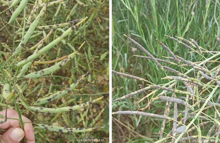 Depuis plusieurs semaines, Terres Inovia observe une dégradation de l'état sanitaire des siliques de colza, particulièrement marquée par des brunissements et noircissements accélérés. Les conditions météorologiques humides ont favorisé la propagation de maladies telles que Mycosphaerella brassicicola et Alternaria brassicae, principalement dans les régions comme le Poitou-Charentes, les Pays-de-la-Loire, la Bretagne, le Centre-Val de Loire. Ces pathogènes causent des symptômes distincts, allant de tâches grisâtres à des tâches noires circulaires, compromettant la maturation des siliques et réduisant potentiellement le rendement.