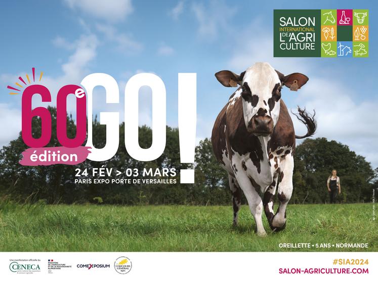 Avec son allure franche, sa robe à trois couleurs et ses yeux cerclés de noir, elle pose fièrement sur les affiches du prochain Salon international de l'agriculture (Sia). Elle, c'est Oreillette. Une placide vache de race normande âgée de 5 ans, sélectionnée pour être la nouvelle ambassadrice du Sia 2024. Celui-ci se déroulera du 24 février au 3 mars au Parc des expositions, porte de Versailles à Paris.