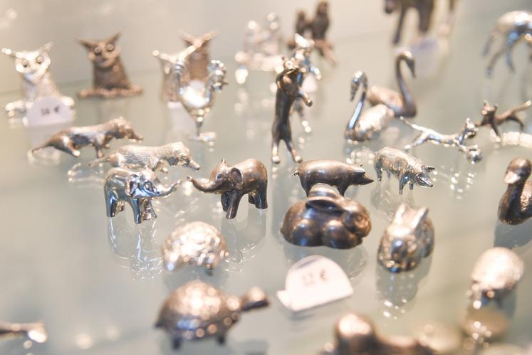 Éric Feillu bifurque alors vers la création, l'artisanat d'art, et se lance dans la fabrication de bijoux et autres objets comme des figurines d'animaux, des tire-bouchons, des lampes… Et quand il parle de l'étain, son regard s'allume : « C'est un métal très agréable à travailler, il est tendre, il brille ».