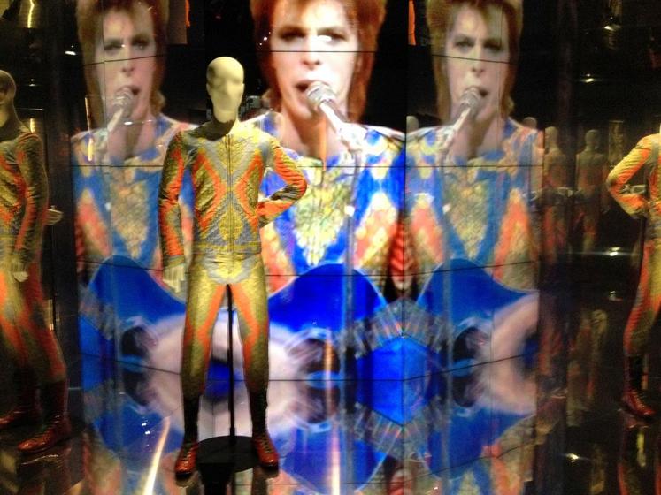 Créée par le très britannique Victoria et Albert Museum au printemps 2013, l’exposition sillonne désormais le monde et fait escale quelques jours à Paris. Si l’on comprend assez vite que le bonhomme naît David Robert Jones à Brixton, quartier de Londres (Angleterre), en1947, qu’il signe à dix neuf ans son premier contrat professionnel et qu’il sait déjà toute l’étendue du talent qu’il n’aura de cesse, sa vie durant, de mettre à l’épreuve : c’est à peu près tout.