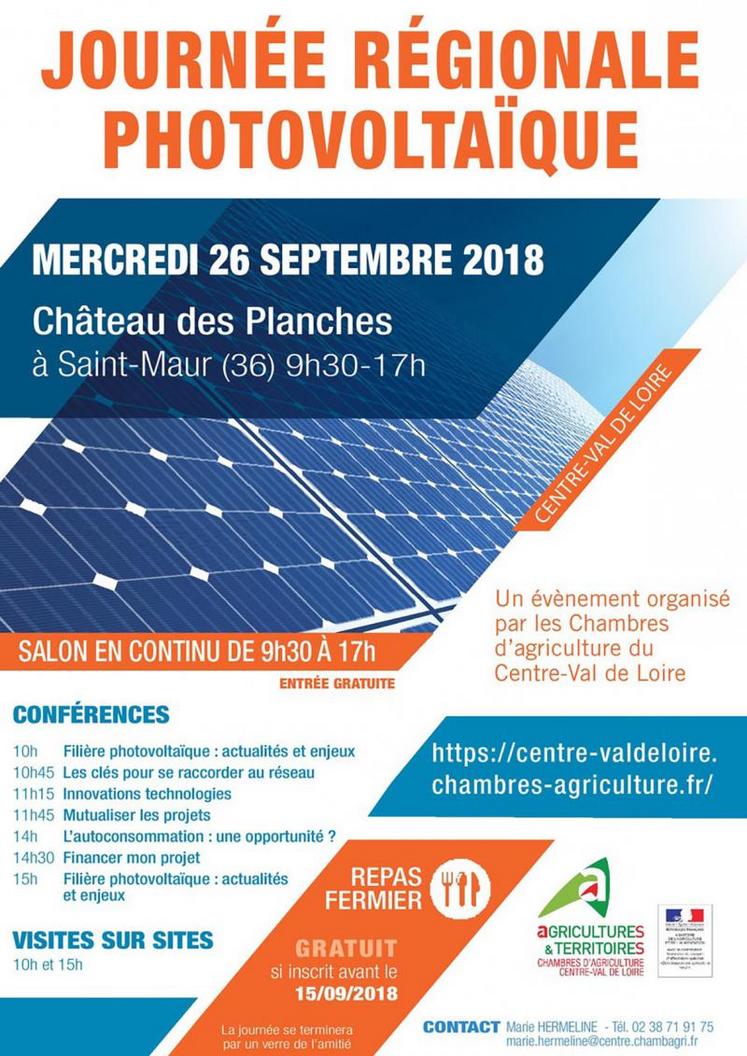 Aussi, pour permettre aux exploitants de se mettre en relation avec des professionnels de la région, les Chambres d’agriculture de la région Centre-Val de Loire organisent le troisième salon régional du Photovoltaïque le 26 septembre 2018, au château des Planches à Saint-Maur (36).
