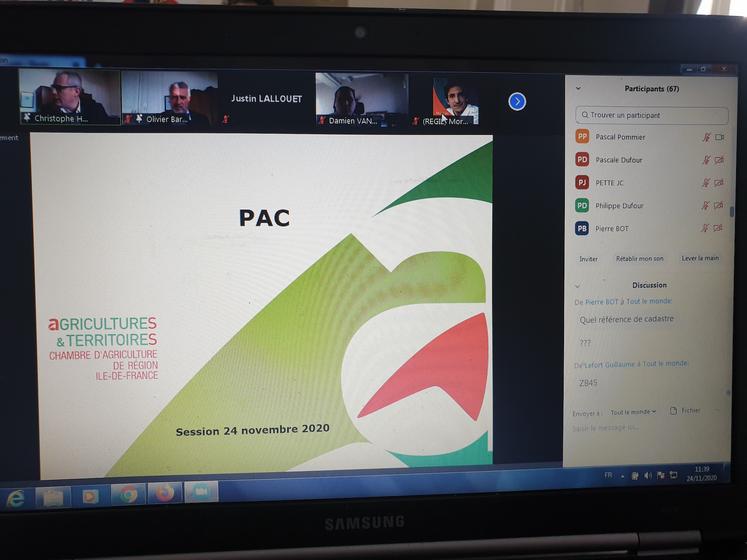 Mardi 24 novembre s’est tenue la dernière session de la chambre d’Agriculture de région Île-de-France de l’année 2020. Du fait du contexte de crise sanitaire, celle-ci a été organisée en visioconférence, en présence d’Alexandra Dublanche, vice-présidente de la Région Île-de-France, et de Benjamin Beaussant, directeur régional de l'Agriculture et de la Forêt d’Île-de-France.