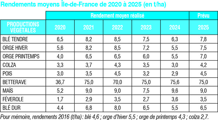 La chambre d’Agriculture Île-de-France, en collaboration avec le Caerif, a mené des travaux de prévisions des résultats de la récolte 2025 à partir d’un échantillon d’environ 130 exploitations agricoles* en grandes cultures conventionnelles, réparties sur la zone Ouest Île-de-France.