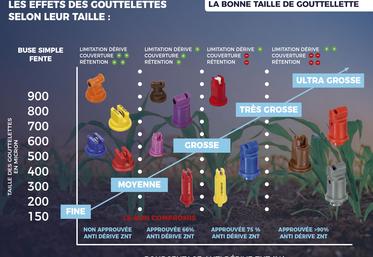 Une pulvérisation efficace passe par une bonne taille de gouttelettes, donc une bonne buse. Teejet…