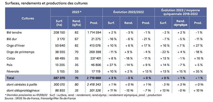 Récolte francilienne 2023 : les chiffres