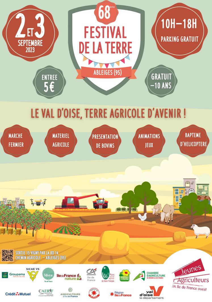 La 68e édition du Festival de la terre se déroule ces samedi 2 et dimanche 3 septembre à Ableiges sur le thème « Val-d’Oise, terre agricole d’avenir ». L’occasion de mettre en avant le savoir-faire agricole francilien, les productions diversifiées du Val-d’Oise mais aussi permettre aux visiteurs de rencontrer et échanger avec le monde agricole.