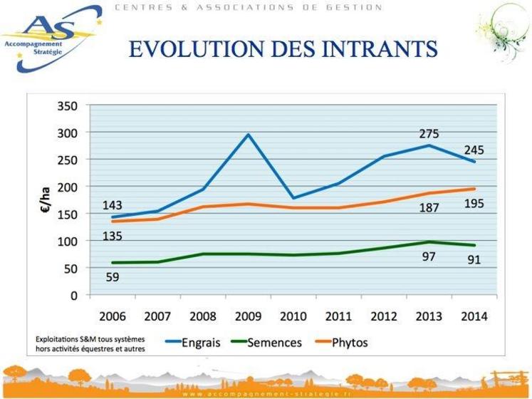 D’une manière générale, depuis 2006, on assiste à une hausse inexorable des charges (+ 45 % soit une hausse de 523 euros en grandes cultures).