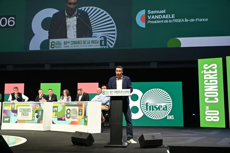 Mercredi 1er avril, 10 heures. Au deuxième jour du congrès, Samuel Vandaele, président de la FRSEA Île-de-France, a prononcé un discours délibérément tourné vers l'avenir alors que le monde agricole affronte une crise majeure. « Les prix sont en berne, les charges toujours élevées, les normes s'accumulent et l'État se fout de nous. Malgré tout, il faut plus que jamais regarder devant. Nous avons une agriculture qui s’adapte, innove, produit avec une forte capacité de rebond », a-t-il martelé.