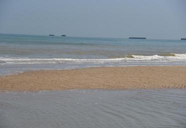 À Arromanches-les-Bains (Calvados), des vestiges du port artificiel, créé en 1944 à la suite du débarquement de Normandie, sont…