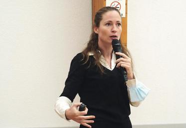 Agnès Tréguier, ingénieur Arvalis, explique aux parlementaires, le 25 septembre à Ouzouer-le-Marché (Loir-et-Cher), la…