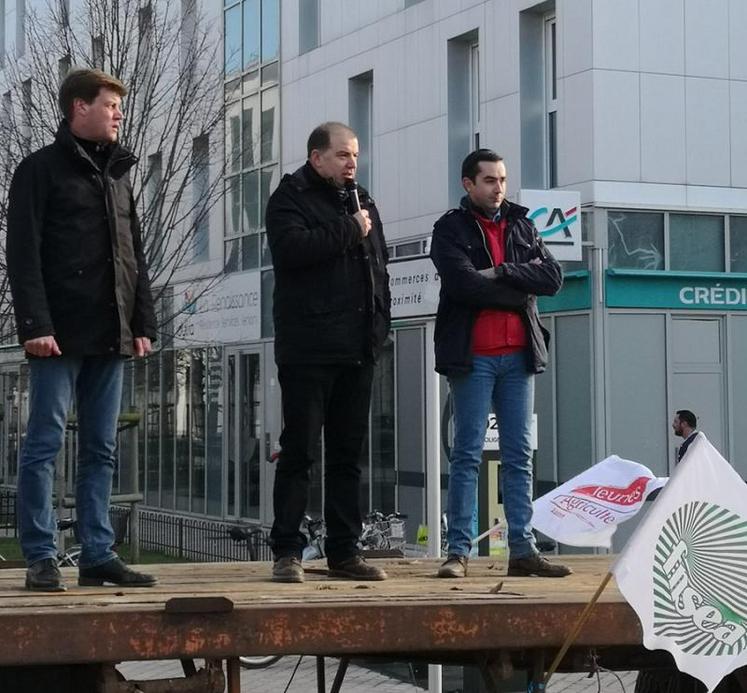 Le mercredi 12 décembre, la FDSEA et les Jeunes agriculteurs du Loiret ont manifesté devant la DDT. Le monde agricole fait face à un matraquage intolérable. Matraquage médiatique, matraquage fiscal et matraquage normatif. Notre image, nos moyens de production, notre capacité à décider en tant que chefs d’entreprises sont remis en cause… La loi EGA, qui devait redonner des perspectives et du revenu à nos exploitations, n’est plus, dans sa majeure partie, qu’un amas de contraintes qui va au contraire grever la compétitivité de nos entreprises. Les conséquences seront dramatiques en termes d’emplois, tant dans nos exploitations que dans notre environnement économique. Que ce soit sur le fond ou sur la forme, le gouvernement fait preuve d’une ignorance intolérable à l’égard des propositions que font la FDSEA et les JA : la dernière version du projet d’ordonnance concernant la séparation de la vente et du conseil en est l’exemple même. Comment peut-on présenter une version dite négociée quand elle ne correspond en rien à ce qui a été discuté précédemment ?