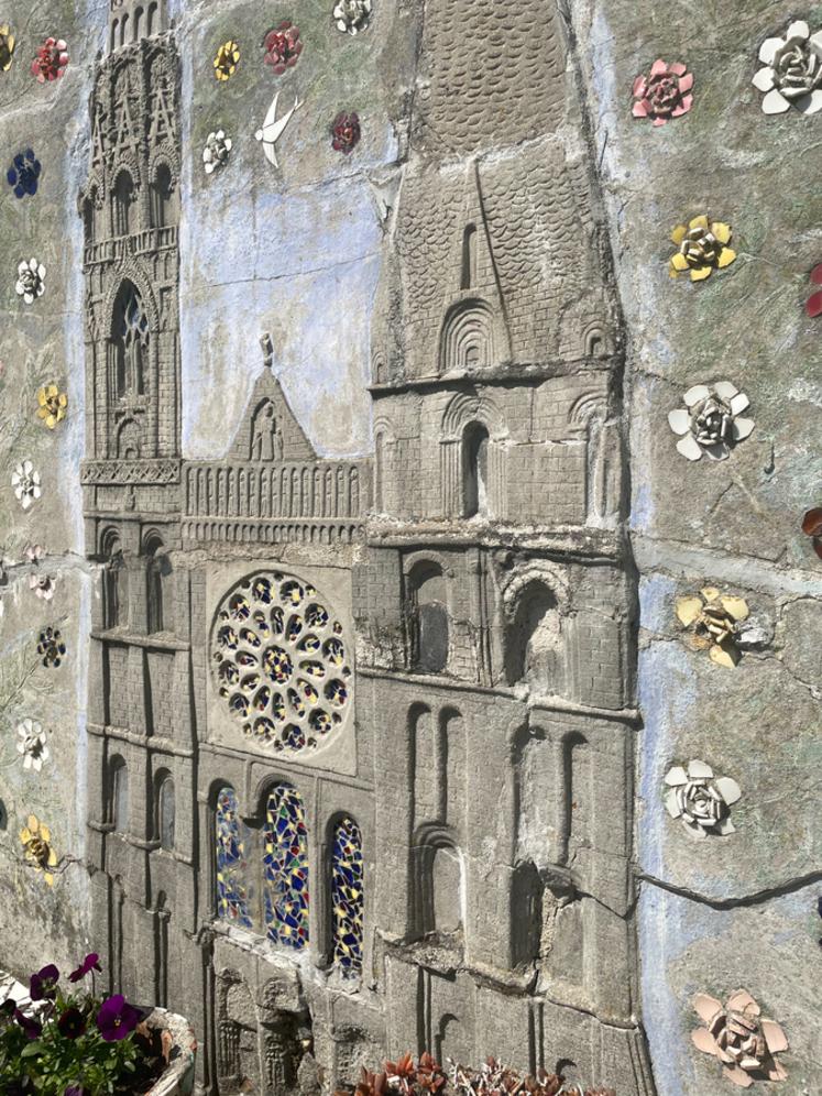 Quand on arpente la rue du Repos en périphérie de Chartres (Eure-et-Loir), on ne peut pas se douter que s'y cache une curieuse maison. Totalement recouverte de mosaïques réalisées avec des débris de vaisselle en porcelaine et de verre en tout genre, on l'appelle la Maison Picassiette. Du sol au plafond, dans chaque recoin, sur tous les objets et même au jardin, cette œuvre monumentale entre art brut et art naïf interpelle. Fresques et sculptures se mêlent aux mosaïques.