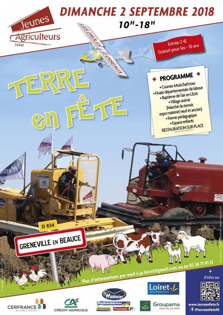 « Terre en fête » a pour finalité d’attirer l’attention sur le monde agricole, ses valeurs, ses savoir-faire. Les Jeunes Agriculteurs de Neuville – Outarville comptent tout mettre en œuvre pour que le public passe un agréable moment en leur compagnie le dimanche 2 septembre à Greneville-en-Beauce (de 10 h à 18 h).