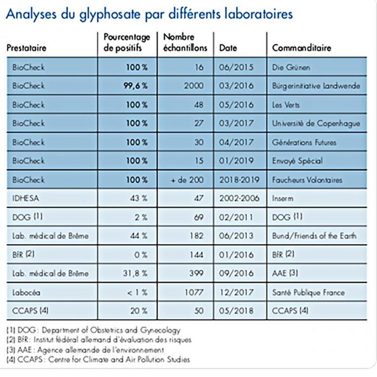 Plus généralement, la FDSEA conteste la méthode d’analyse utilisée par le laboratoire Biocheck. En effet, le laboratoire qui réalise ces tests avec la méthode Elisa n’exclut pas « une petite réaction croisée avec l’AMPA ». Ce laboratoire est aussi co-fondé par le docteur Monika Krüger, militante anti-glyphosate témoin du « Tribunal Monsanto » organisé par la militante écologiste Marie-Monique Robin. Selon Gil Rivière-Wekstein, ce laboratoire est le seul au monde à donner des résultats à 100 % positifs, ce systématiquement. La FDSEA a réagi auprès des journaux concernés. Elle a adressé un dossier de presse, relatant ses positions et ses arguments. La FDSEA regrette qu’à ce jour ses positions et ses arguments n’aient pas fait l’objet d’un article, dans le but d’apporter des éléments de réflexion complémentaires aux lecteurs.