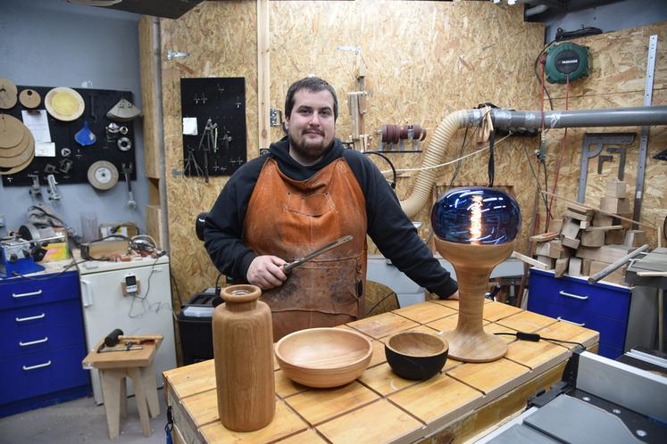 Du porte-clés à la lampe, en passant par un vase, Thomas Saint Georges, ébéniste tourneur, conçoit des objets uniques et personnalisés en bois. Installé au Mée-sur-Seine (Seine-et-Marne), il a créé L’Atelier aboie à la suite d'une reconversion professionnelle.