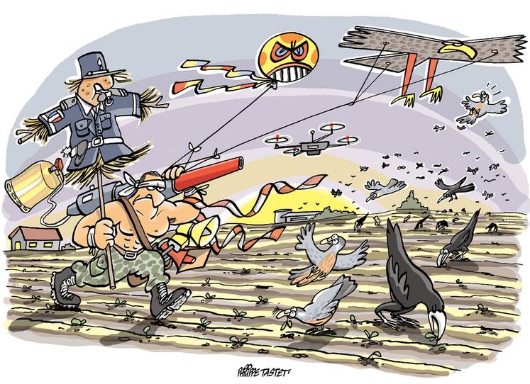 Les oiseaux sont les principaux ravageurs de début de cycle. Qu’il s’agisse de pigeons, de corbeaux ou de corneilles, l’important est de varier les moyens de lutte utilisés afin de limiter l’accoutumance des oiseaux. Voici quelques méthodes classées par ordre d’efficacité, leur combinaison étant recommandée :