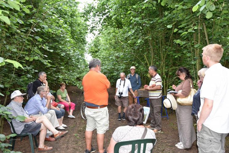 La quinzaine de visiteurs a ainsi découvert une noiseraie, de la plantation d’un verger à la récolte des noisettes.