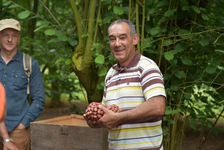 « La noisette tombe naturellement dès qu’elle est sèche. Les mauvaises tombent courant août avant les bonnes. Les plus grosses tombent elles en dernier, parfois jusqu’à mi-octobre, ce qui ne rend pas le travail de ramassage facile car le terrain devient de plus en plus humide », a expliqué le producteur.