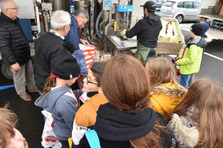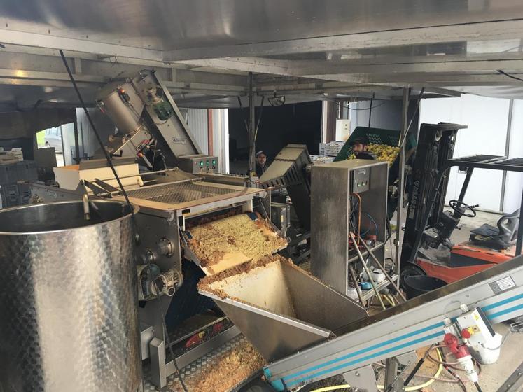 En 9 heures de travail, la Pressi-mobile a rendu pas moins de 7 000 litres de jus de pommes et jus de pommes-poires, qu’il va mettre prochainement en bouteilles.