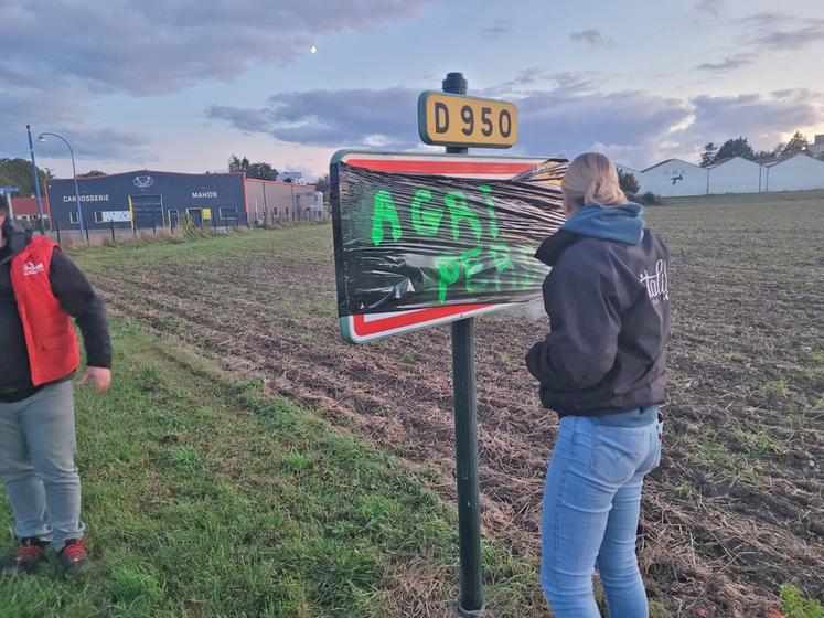 Dans les rangs des JA mobilisés, Dorian Sagot, agriculteur du Pithiverais et vice-président de Jeunes agriculteurs Loiret, a mobilisé une dizaine d’adhérents de son canton au pied levé pour l’action « panneaux ». Il témoigne.