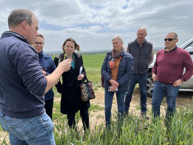 Jeudi 15 mai, à Neauphle-le-Vieux (Yvelines). Les représentants de la Driaaf et de la DDT ont constaté les dégâts de la grêle dans les champs.