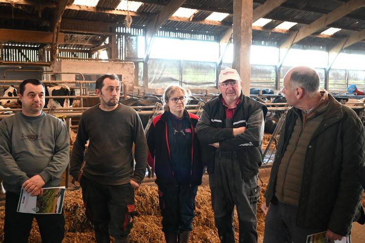 Julien Perron a présenté l’exploitation familiale qui s’étend sur 460 hectares, dont une zone irrigable sur trois secteurs différents de 300 hectares. Toutefois, seulement 50 hectares sont irrigués. « Nous ne sommes pas des fous de l’irrigation. On veut simplement pouvoir assurer une partie de nos récoltes de maïs », a-t-il expliqué. En effet, le morcellement des parcelles rend l’irrigation difficile, d’où la nécessité d’un stockage d’eau à proximité de l’élevage pour pouvoir irriguer le maïs qui est actuellement cultivé sur des parcelles à plusieurs kilomètres.